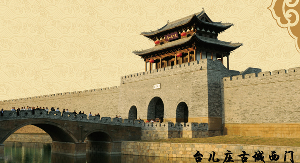 臺兒莊歷史文化深厚,形成于漢,發(fā)展于元,繁榮于明清。清代《嶧縣志》記載:“臺(兒)莊跨漕渠,當南北孔道,商旅所萃,居民饒給,村鎮(zhèn)之大,甲于一邑,國朝高宗(乾隆皇帝)賜為‘天下第一莊’”,呈現(xiàn)出“商賈迤邐,一河漁火,歌聲十里,夜不罷市”的繁盛景象。1938年春發(fā)生的臺兒莊大戰(zhàn),使這座運河古城化為廢墟。2008年中共棗莊市委、市政府重建臺兒莊古城。 看世界二戰(zhàn)遺址最多的城市,要到臺兒莊來; 看運河文化的活化石,要到臺兒莊來; 看京杭運河最后一段活著的運河,要到臺兒莊來; 看東方古水城,要到臺兒莊來。 同時臺兒莊古城還是大陸首個海峽兩岸交流基地。 臺兒莊古城規(guī)劃面積2平方公里,包括11個功能分區(qū)、8大景區(qū)和29個景點。截止目前,古城重建已完成20萬平方米的建筑面積,累計投資達27億元。重建后的臺兒莊古城,院院不同、院院有水、院院有主題文化、院院有展館。 “臺城舊志”景區(qū)和“運河街市”景區(qū)自去年“五一”試運營以來,一年共接待游客150萬人,僅去年國慶黃金周就達到25萬人,臺兒莊古城的知名度、美譽度節(jié)節(jié)攀升,榮獲2010中國旅游品牌總評榜山東分榜“十佳景區(qū)”榜首和“齊魯文化新地標”榜首,正在成為國內重要的旅游目的地和休閑度假區(qū)。目前上海倫達投資集團、云南麗江市千里走單騎旅游公司等知名品牌企業(yè)紛紛到臺兒莊古城投資開發(fā)旅游項目。